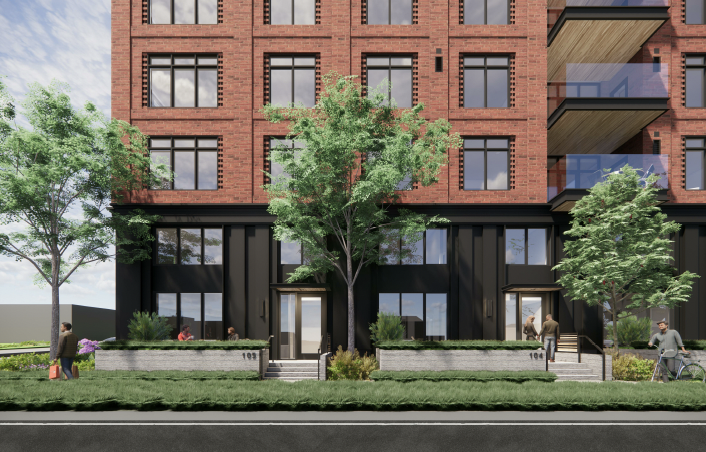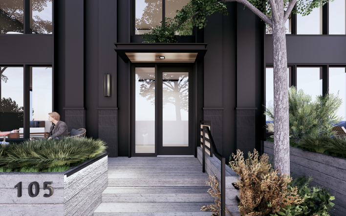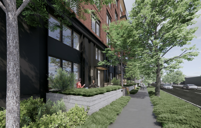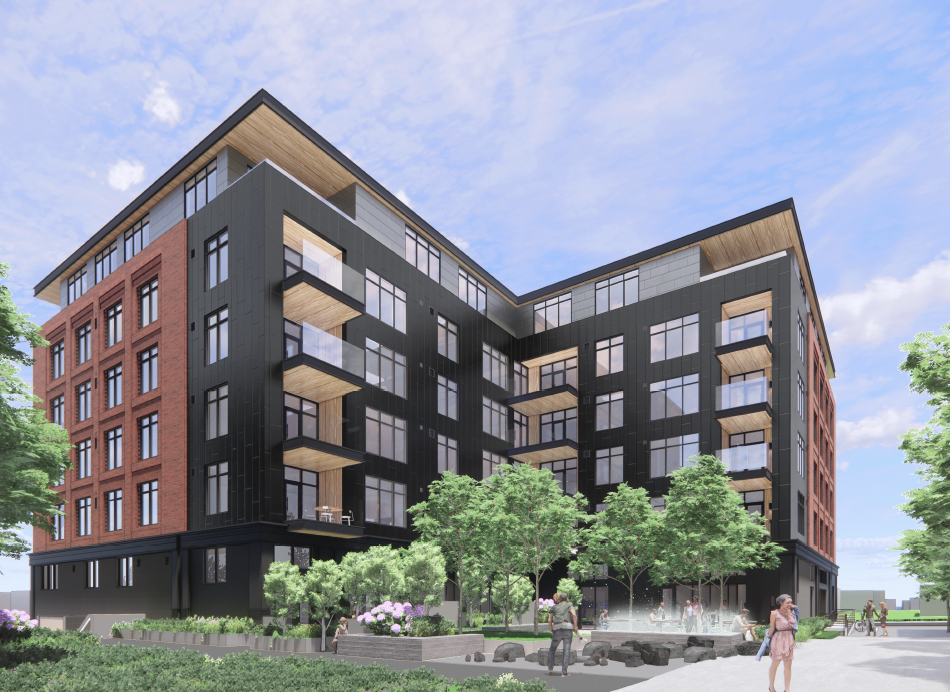 The Henry project includes the demolition of the existing surface parking lot and low-rise building to construct a 70ft tall, 116,000 sf multi-family condo residential facility. The project includes a 5-story L-shaped Type-III wood-framed residential tower above a 2-story Type-I concrete-framed podium that includes residential walk-up units, a residential lobby, amenity spaces, and a basement level that includes a 45-space parking garage for residents. A semipublic/ semi-private ground-floor courtyard will be located at the southwest corner of the site and will include a water feature. The project includes 44 residential dwelling units with 1-bedrooms, 2-bedrooms, and 3-bedrooms with approximately 5,500 sf of balconies.